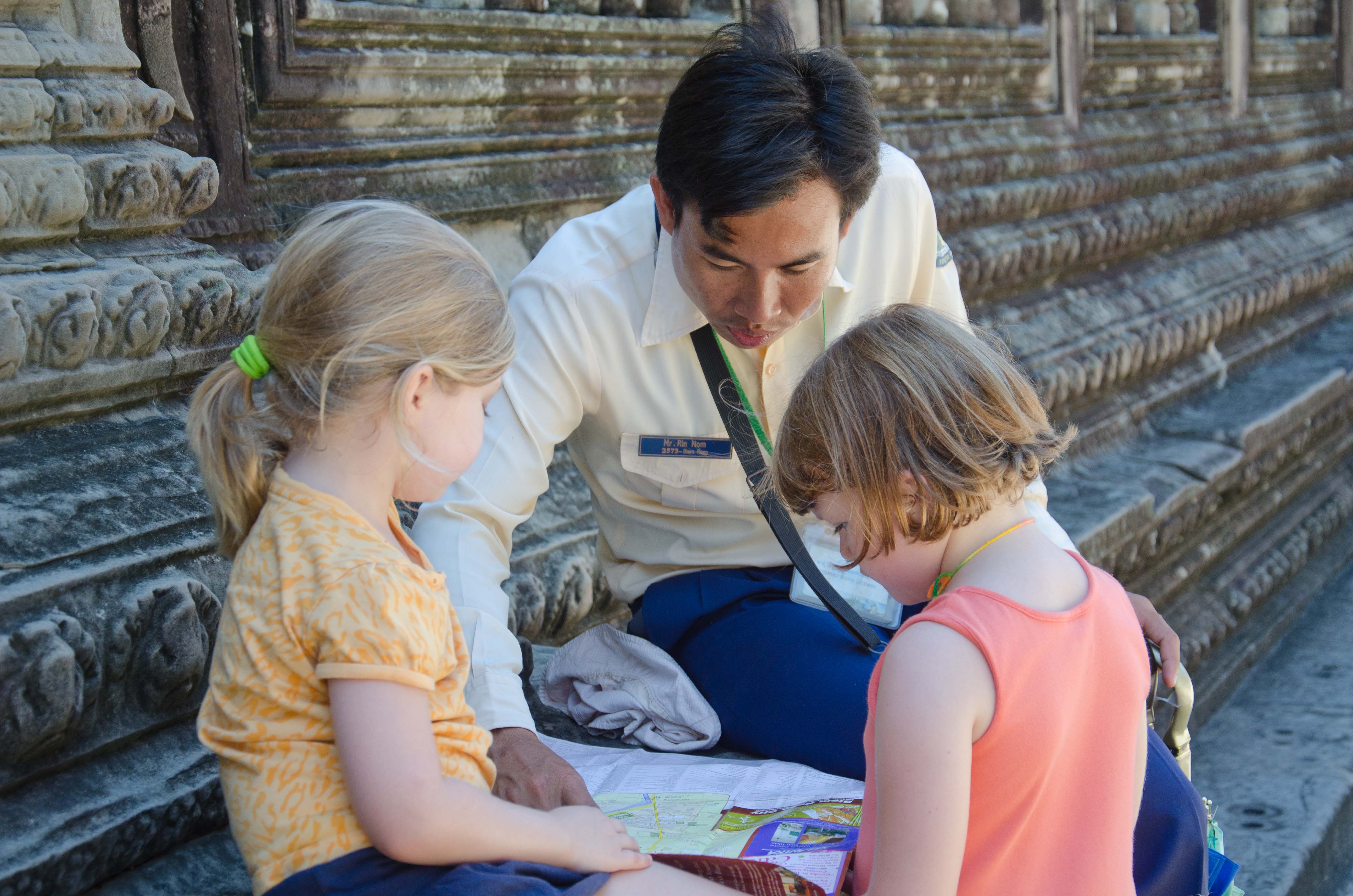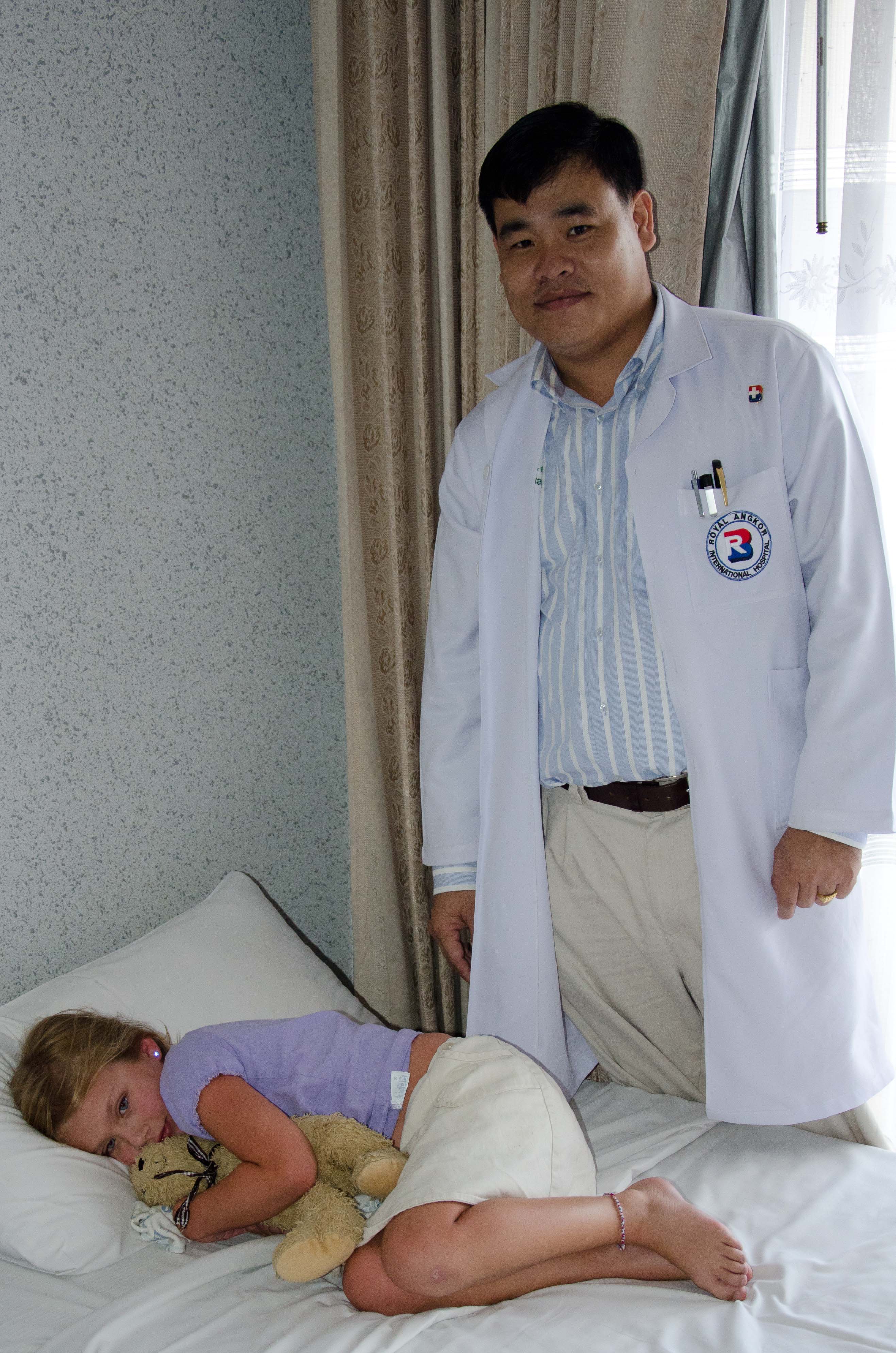 So, what is the first thing you get to do when you get to Cambodia? If you guessed ‘discover the big little Stockdale has a nut allergy’ grab yourself a tote bag! After we got to our hotel the little Stockdales wanted to walk around downtown Siem Reap, so we did. They also requested ice cream and since they had been reasonably well-behaved on the plane, Mrs. Stockdale and I acquiesced. For obvious reasons we chose an establishment that served both ice cream and alcohol. The big little Stockdale’s sundae came with a fancy cookie/biscuit thing. A few minutes after her first bite of the fancy cookie/biscuit thing these dots started appearing on her chin, then she complained about a tingling in her throat, then the dots got bigger, then I took her back to the hotel, then I gave her half a Benadryl, then we went back to the restaurant to get the others, then on the way back to the hotel she threw-up on the sidewalk in front of a street vendor, then I carried her back to our room, then she started getting itchy all over, then she wanted a bath to get rid of the itchiness, then she stood up and her pupils dilated and she said she couldn’t see, then Mrs. Stockdale went to the front desk to get a doctor, then she threw up all over the floor of the hotel room, then the doctor arrived and did all the standard tests, then the doctor gave her some Zyrtec and a steroid and said she was fine and that we should have her tested when we get back to Singapore, then Mrs. Stockdale had to go to the ATM because even in Cambodia calling a doctor to a hotel room is expensive, then the big little Stockdale was fine and our vacation continued.