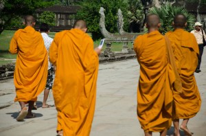 Imagine that if instead of the Colorado river having created the Grand Canyon over millions of years, King Somebody XII gave 50,000 people each a teaspoon and told them to start digging. That’s the scale of this thing and the surrounding temples. But, just as amazing as the temple, it was just as cool to see a monk with a cell phone. ( If you look really close, its pink! )