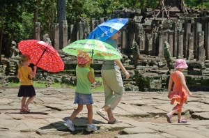 Specifically, we went to Siem Reap, Cambodia. This the place with all the temple ruins that you may or may not have seen on television. Parts of the movie ‘Tomb Raider’ were filmed at one of the temples we visited. Or, if you have ever seen the Mayan ruins, these are just an Asian version of that. The best way to sum up Siem Reap in a standard American vacation context would be visiting the Grand Canyon.