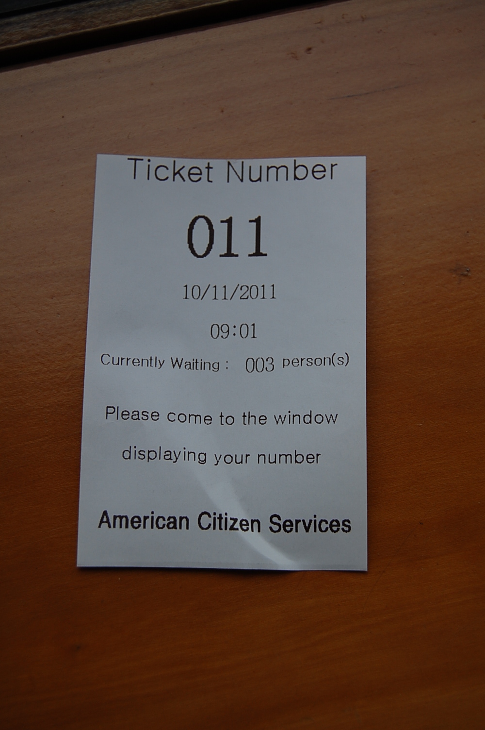 First, you have to go to the US Embassy and have your Kansas driver’s license notarized. This is basically a note from your mother that says your driver’s license is actually a driver’s license. When you get there, you take a number that I unfortunately discarded and wait about 10 minutes.