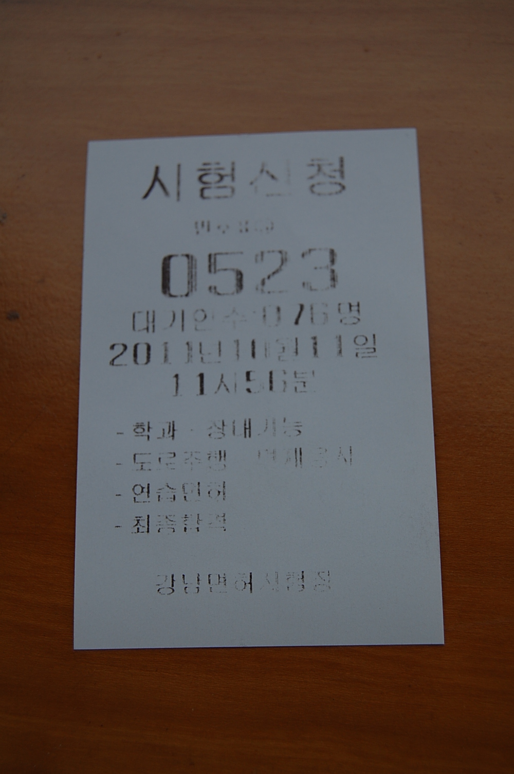 Eleventh, don’t bother studying Korean traffic law, go to the fourth floor and take the most pointless written driver’s examination ever administered. Surprisingly, you don’t have to wait.