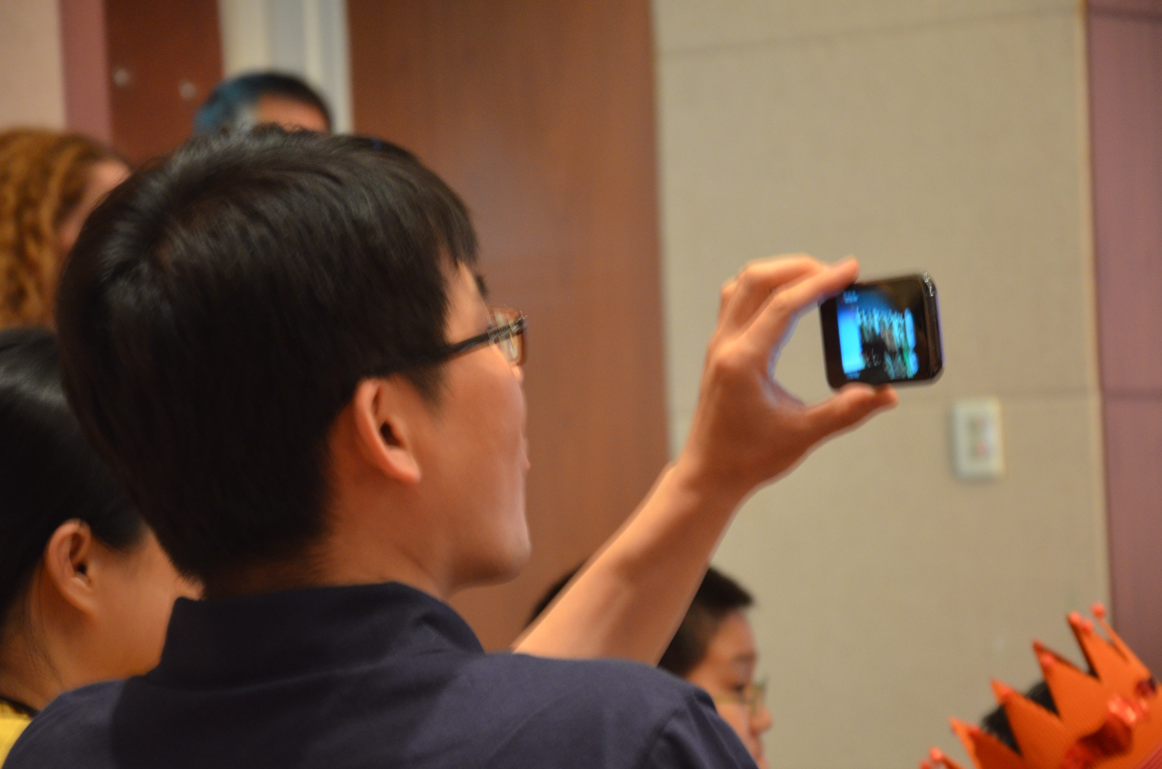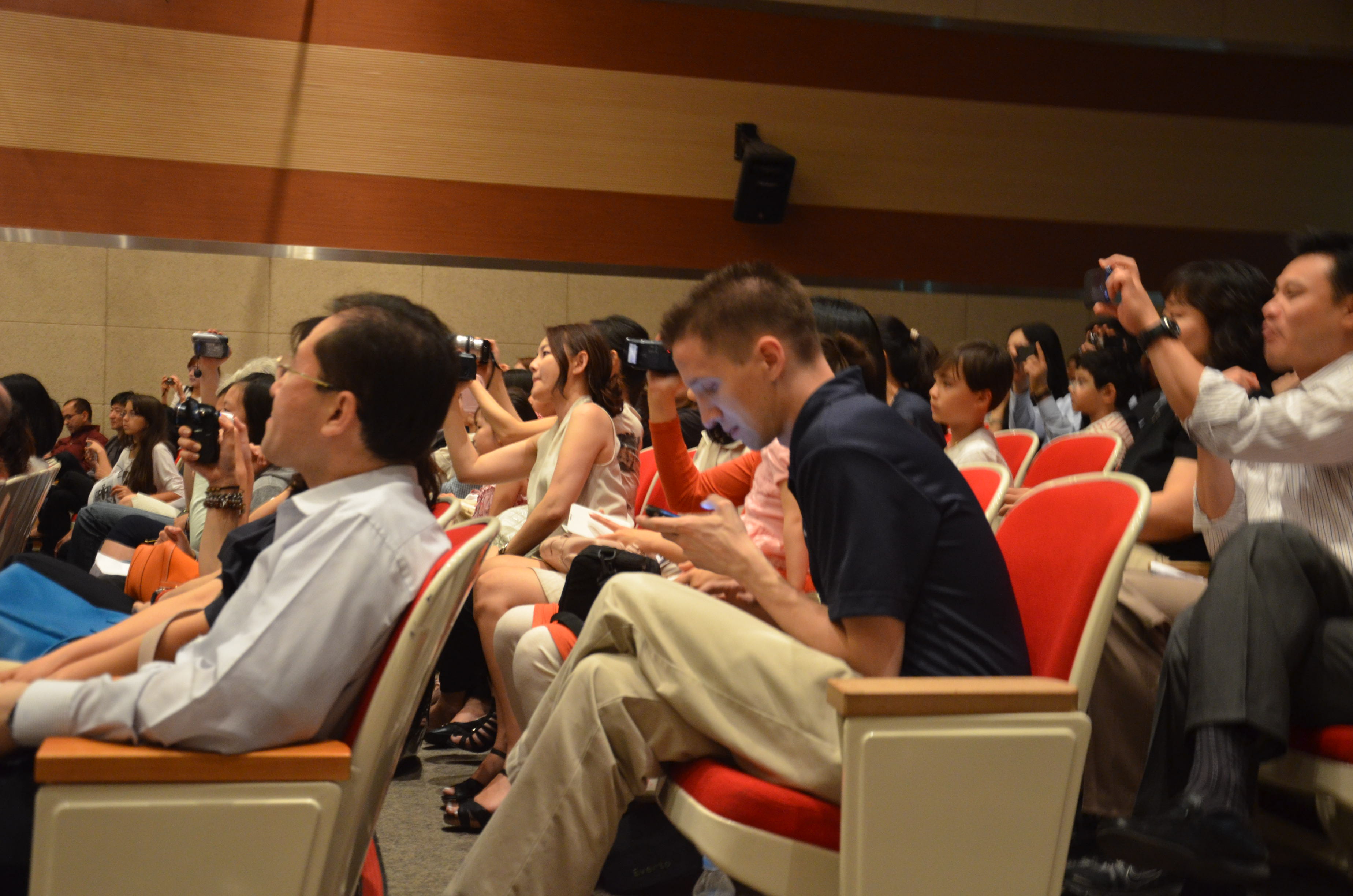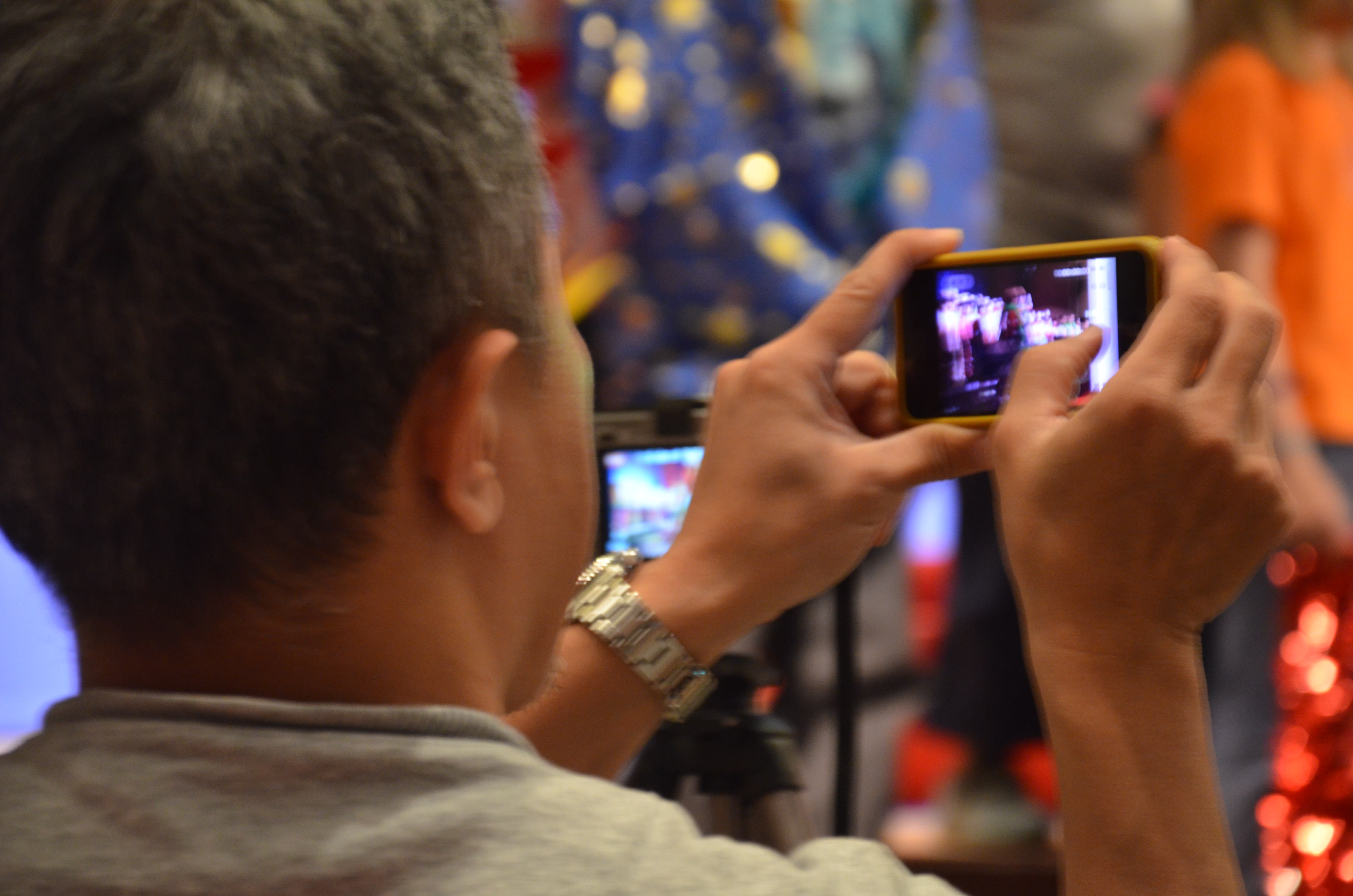 This guy had two cameras, one camera on a tripod and also his phone. My guess is that as soon as he got home he was going to edit them together and watch his son/daughter perform from the comfort of his couch.